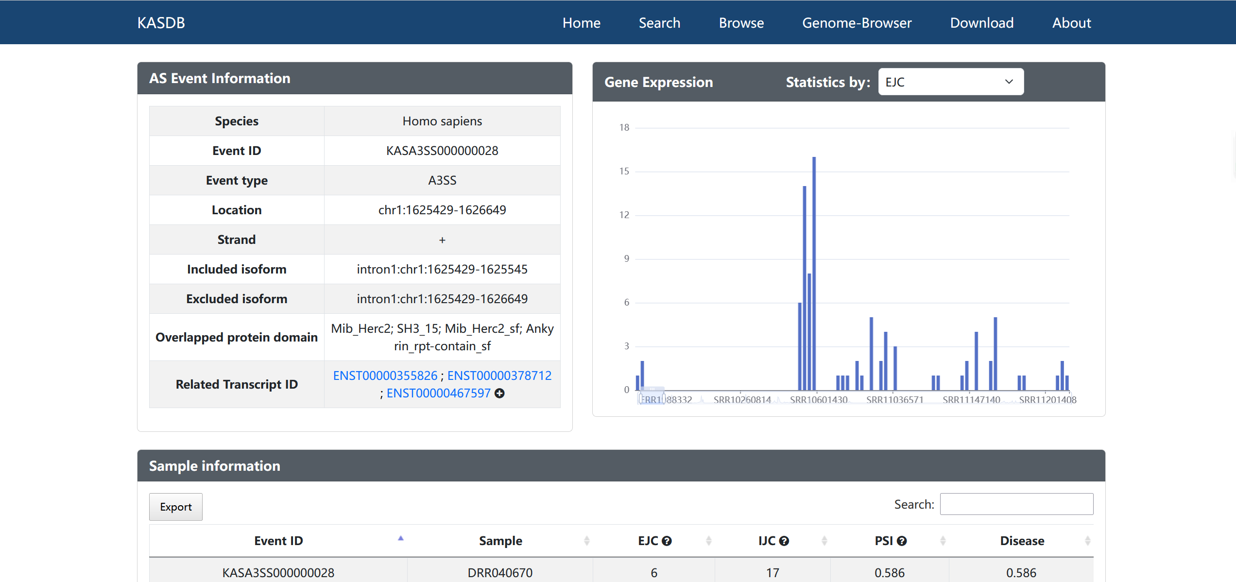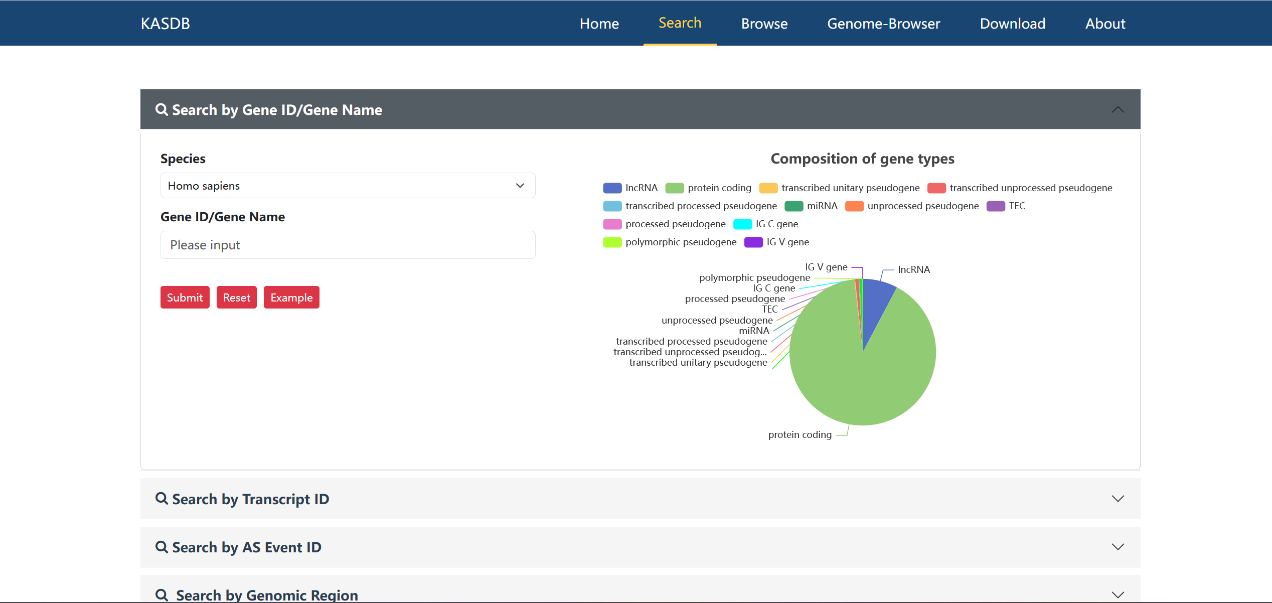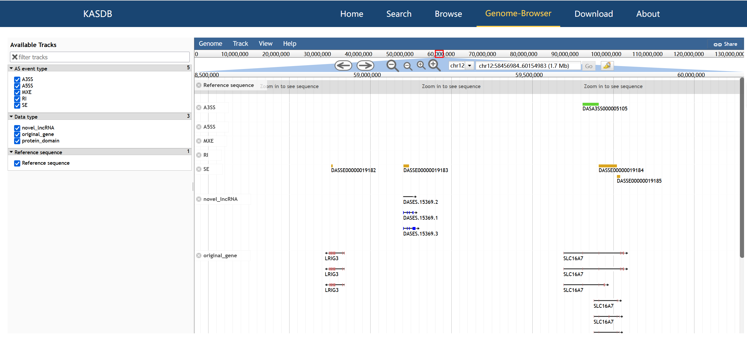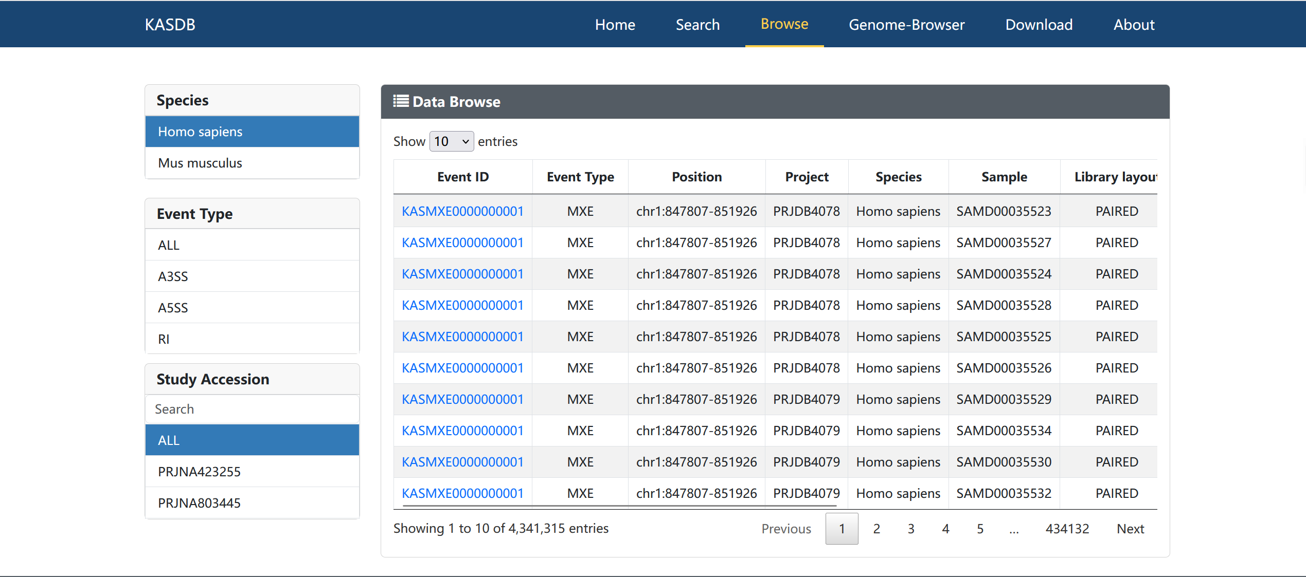 Kidney Disease Alternative Splicing Database (KDASDB) is a specialized database focusing on alternative splicing events (ASEs) derived from a large number of kidney disease cases, with a collection of 90273 ASEs, identified from 2406 samples, 29 kinds of kidney diseases, covering human and mouse species. KDASDB provide user-friendly query and visualization interfaces to help researchers to quickly obtain AS state and explore their biological function. By providing a comprehensive insight into the ASEs in kidney disease, KDASDB will contribute to a deeper understanding of the pathogenesis of kidney diseases and the search for new treatment strategies.